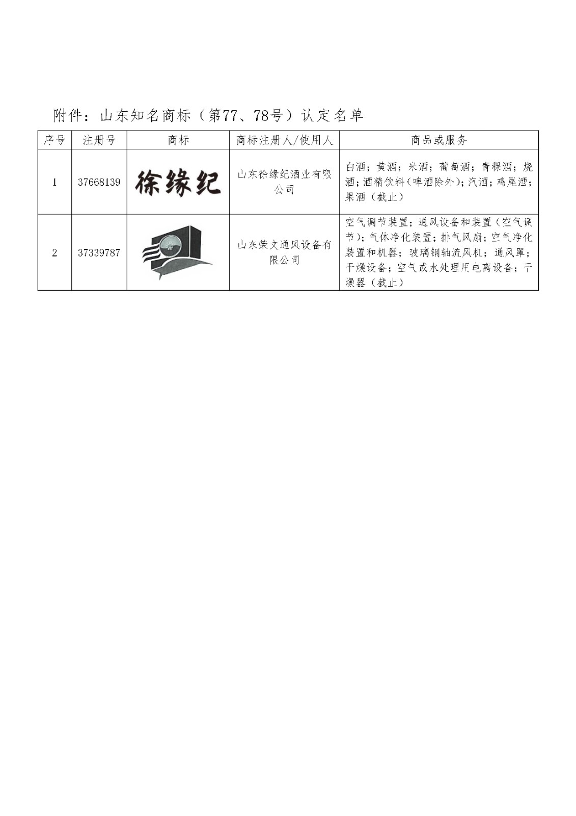 关于认定山东知名商标(第77、78号)的公告