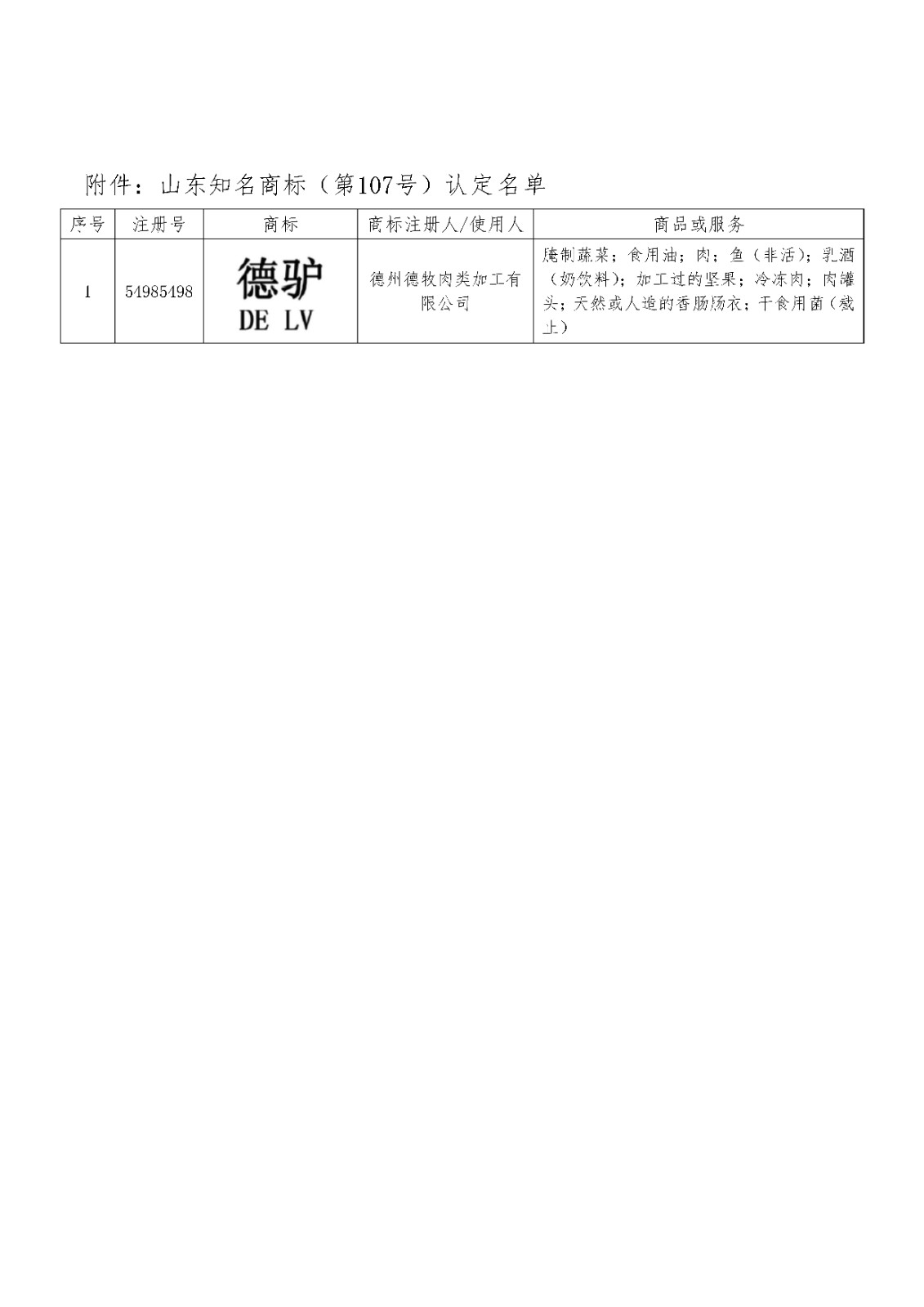 关于认定山东知名商标(第107号)的公告