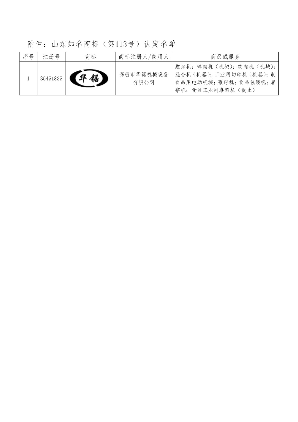 > 关于认定山东知名商标(第113号)的公告