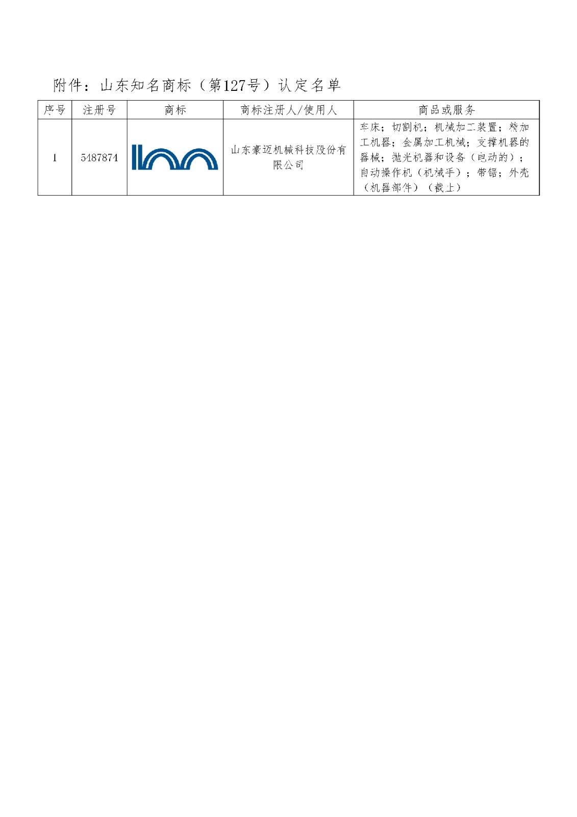 > 关于认定山东知名商标(第127号)的公告